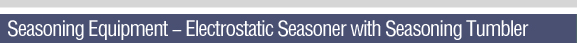 • The electrostatic seasoner virtually eliminates the problem of airbone seasoning powders contaminating the work environment. When using the Electrostatic Seasoner, a new and improved power supply charges particles with a higher efficiency, confininf seasoning particles to the interior of the tumbler's drum -- a feature that line operators will greatly appreciate.