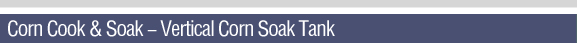 Vertical stainless steel 500 gallon soak tanks designed to hold the cook batch for steeping. Tanks are mounted on the corn cook platform. The cooked corn transfer pump will pump the corn from the receiving tank to the desired soaking tank.