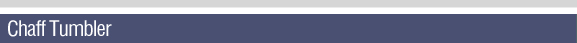 A tumbler constructed of perforated stainless steel and is designed to remove fines and chaff from the extruded product before frying. A removable crumb pan will be installed. The chaff tumbler comes complete with a stainless steel frame and a fixed speed drive.
