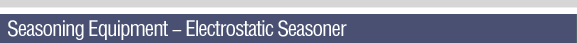 • The electrostatic seasoner virtually eliminates the problem of airbone seasoning powders contaminating the work environment. When using the Electrostatic Seasoner, a new and improved power supply charges particles with a higher efficiency, confininf seasoning particles to the interior of the tumbler's drum -- a feature that line operators will greatly appreciate.